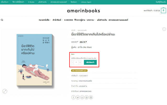 2.เมื่อเข้าสู่หน้าสินค้า เลือกจำนวน แล้วกดที่ปุ่มหยิบใส่ตะกร้าเพื่อสั่งซื้อสินค้า