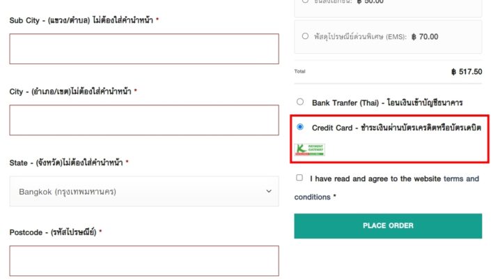 เลือกชำระเงินด้วยบัตรเครดิต จากนั้นกรอกเลขบัตรเครดิต และดำเนินการตามขั้นตอน