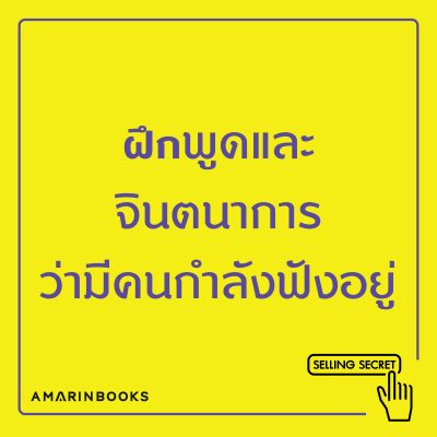 การขายคือการพูด ถ้าคุณอยากเป็นนักขายที่ดี คุณก็ต้องเป็นนักพูดที่ดีด้วย การฝึกความมั่นใจและความสามารถในการพูดไม่ว่าต่อหน้าคนเยอะๆ หรือต่อหน้าลูกค้า 1 คนก็ใช้การฝึกเหมือนๆ กัน นั่นก็คือ การสมมติว่าคุณยืนอยู่ต่อหน้าผู้คน หรือคุณเป็นผู้พูดและมีผู้ฟัง แล้วฝึกพูดอย่างมั่นใจ มีพลัง สื่อสารเนื้อหาให้ผู้ฟังเข้าใจ และถ่ายทอดอารมณ์ให้ผู้ฟังเข้าถึงได้ ยิ่งกว่านั้นคือสร้างความประทับใจได้ดี