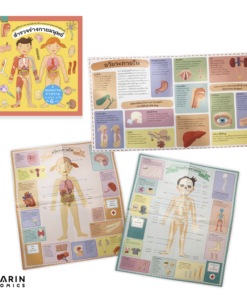 เรียนรู้เรื่องราวต่างๆ เกี่ยวกับร่างกาย แบ่งเป็นหมวดหมู่ต่างๆ ได้แก่ ส่วนต่างๆ ของร่างกาย, อวัยวะภายในต่างๆ, ระบบไหลเวียนเลือด, ระบบประสาทสัมผัส, กล้ามเนื้อ, กระดูก ภาพประกอบมีขนาดใหญ่ เป็นแผ่นพับกางออกมาจากเล่มได้ มีความสวยงาม เห็นชัด เข้าใจง่าย มีแผนที่พักได้ขนาดใหญ่ 6 แผ่น